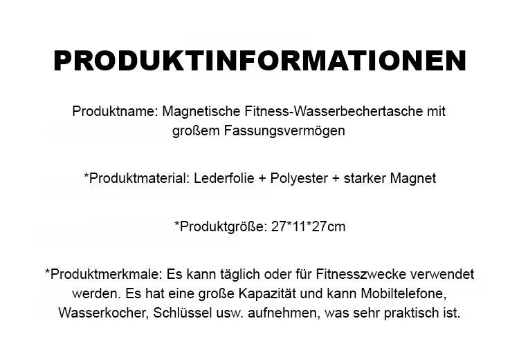 Magnetische Fitness-Wasserbechertasche mit großem Fassungsvermögen